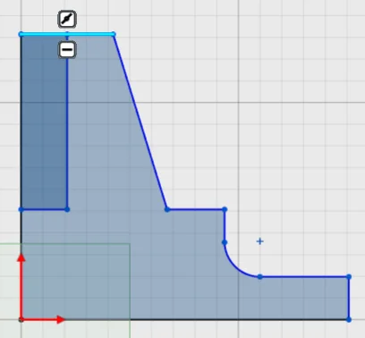 First, we want to make sure all of the vertical and horizontal lines are set. Notice that when we click the line on the left, the “Vertical” relation icon appears next to the line. Similarly, the horizontal line shows the “Horizontal” relation icon when we click on it. We want the shorter line segment here to be vertical.