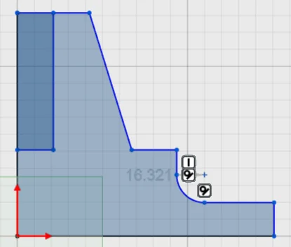 A key aspect of creating revolved features is making sure the surface geometry is smooth and doesn’t have awkward edges. This means we need to make sure that this arc is tangent on both sides with the vertical and horizontal lines. We’ll add the first “Tangent” relation by selecting the arc and the vertical line, and choose “Tangent”. We’ll make sure to select the arc again, and the horizontal line, and select “Tangent” once more.