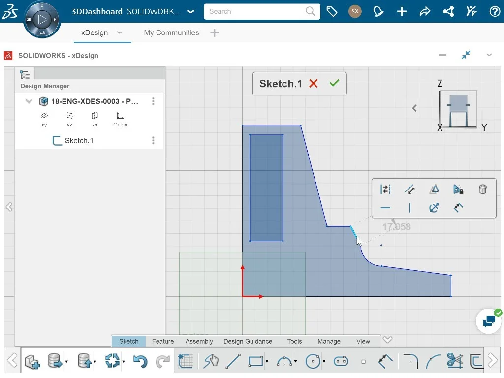 Here, we have a sketch in xDesign that doesn’t have any dimensions added.