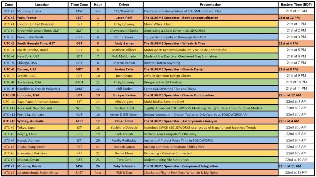 That almost four-hour run time inspired Joe N. Lance of the Houston, TX user group (HOUSWUG) to remark “I thought the ‘L’ in SLUGME meant Largest? Isn’t this the LONGEST user group meeting ever?” The SLUGME organizing committee immediately replied “Challenge Accepted!” and SLUGME 6 was born. The only logical next step was a 24-hour meeting, but we needed a theme. So, we figured – SOLIDWORKS is part of Dassault Systemes, which is is based in France. What else is based in France and 24 hours long? The 24 Hours of Le Mans auto race. Kam, Todd, and Eric were all fans of the movie “Ford Vs. Ferrari.” It all came together. They recruited a team of SOLIDWORKS experts to design a Le Mans Hypercar-series racer and pitched the idea to SOLIDWORKS management. The result will debut, starting at 5PM Paris, 11AM ET US, 8AM PT US and proceed, time zone by time zone, to deliver 26 hours of “pre-race,” event, and “post-race” presentations full of amazing SOLIDWORKS learning content at 6PM no matter where in the world you are.
