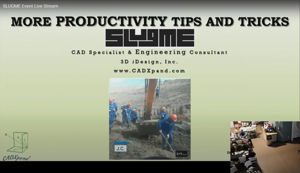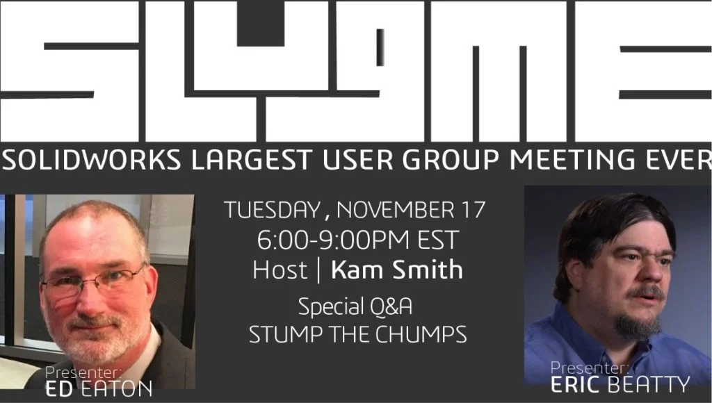 At the same time, you might say that SLUGME had well-prepared the SWUGN community to pivot rapidly and successfully to an online meeting mode. And so, for SLUGME 5 (aka SLUGME 2020), we went entirely virtual for the first time. Kam and Eric switched roles. Eric served as the “opening act” presentation. He took a look at SOLIDWORKS Connected and the 3DEXPERIENCE Platform cloud apps, xDesign and xSheetmetal. Noted Industrial Designer and surface modeling expert Ed Eaton encored his well-received “Trees of Blood” feature manager troubleshooting tips and techniques. Additionally, SOLIDWORKS own Mark Schneider (of Model Mania fame) joined the team for a special edition of “Stump the Chumps.” The added content took the meeting length to nearly four hours!