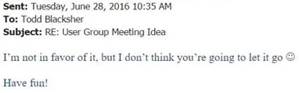 He immediately sent off an email, pitching the idea to SWUGN leadership. And he continued to pitch the idea, even though it was falling on mostly deaf ears. Nevertheless, he persisted. And at long last, Todd received (not quite) the answer that he needed: