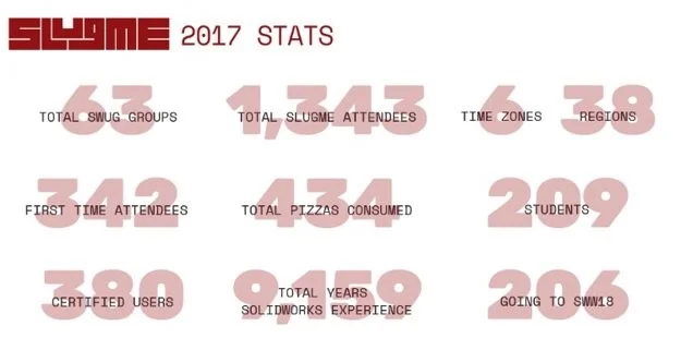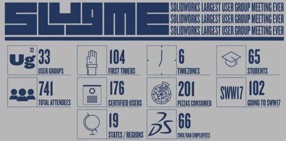 The event was a rousing success. So much so that planning for the 2nd SLUGME event got underway almost immediately. In November 2017, webcasting from Lincoln, NE, Todd Blacksher presented his acclaimed SOLIDWORKS World “All The Small Things” presentation. As for the event statistics, SLUGME 2, aka SLUGME 2017, set the bar even higher. The number of user groups, the number of attendees AND the number of pizzas consumed ALL doubled from the first event.