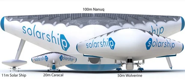 The Nanuq is the biggest aircraft Solar Ship offers with the width stretching out to be 100 meters, it has a payload of at least 66,139 pounds and has to fly at least 1,243 miles. Although it is not fully developed yet, the Nanuq will provide a large cargo service for remote areas in Canada, Africa, China, as well as Australia and other parts of Asia, linking remote regions in these countries to each other.