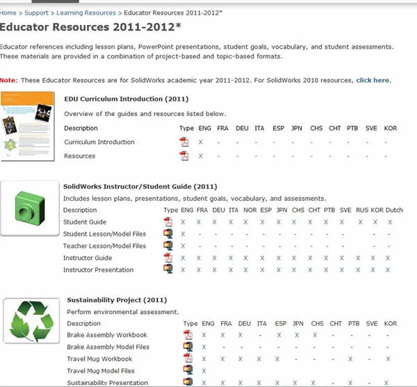 SolidWorks Curriculum for Educators on the SolidWorks Customer Portal