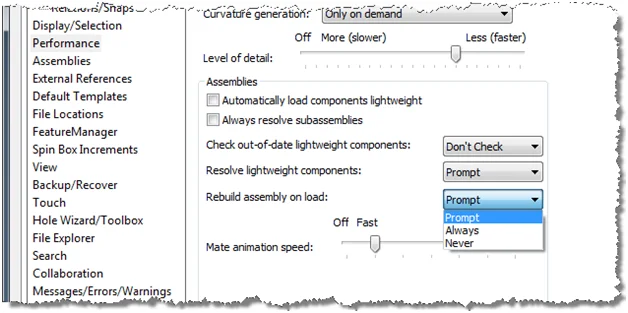 The last messages to watch out for are the ones that apply to a specific assembly or session of SolidWorks meaning that on the next file you open or the next time you close and restart SolidWorks you will be prompted once again for the same thing we were once before.