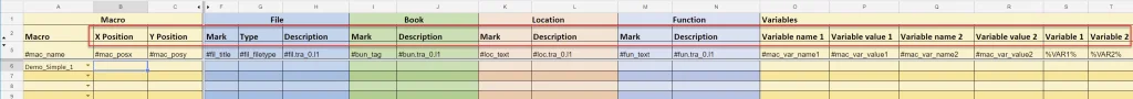 - Insertion Point – (X, Y Coordinates) Exist within the macro. Used to place macro within new drawing create with Excel Automation.