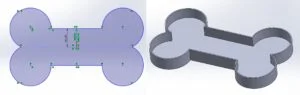 With my rough measurements in front of me it was time to get started with the design of the housing. To get started I created a new sketch in the top plane and sketched out the rough dimensions I had noted down as a starting point. From here I could get to work with the outline of the shape I wanted to create. As this was to be a soundboard for a dog, I wanted the outline of the housing to be bone shaped, as this design incorporated some symmetry lines, I would only need to sketch out ¼ of the design before mirroring to create the rest. I had setup the sketch to be about the origin center point and I got to work by sketching a vertical and horizontal construction line from this point, these would act as my lines of reference for the mirror command later in the process. I sketched out the required portion of the bone shape as large as required to encapsulate the components needed. From this point I added some dimensions to lock these lines into place before offsetting the sketch 2mm to create a second line slightly further out than the original sketch.
