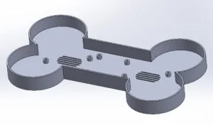 With the base piece done it was time to focus my energy on the upper lid section, I did a bit of a cheat code and copied the original sketch I had made for the base piece into a new part and pasted this onto the top plane. From here I extruded this 30mm before then using the inner line on this same sketch to cut a pocket upwards into this 27mm. To create more of a bone shape for the upper segment I added two 15mm radius fillets to the inner and outer edges which resulted in the below design!