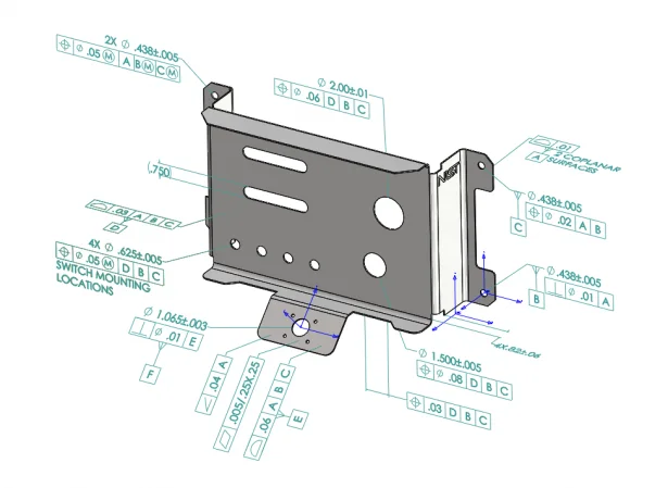 The process is similar to working with 2D drawings (*.slddrw). In just a couple of steps, you can set up a project and then define with simple checkboxes if you need to include or exclude Dimensions, Notes, GD&Ts, Hole Callouts, etc. SOLIDWORKS Inspection automatically adds the balloons to the PMIs so that quality inspectors can refer to the inspection spreadsheet and the 3D model to understand the characteristics to inspect.