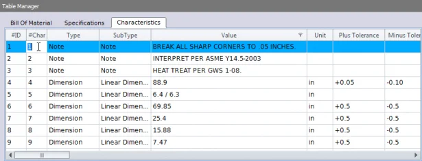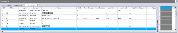 Also, similar to working with PDF or TIFF files, the characteristics are ballooned and added to the Bill of Characteristics.