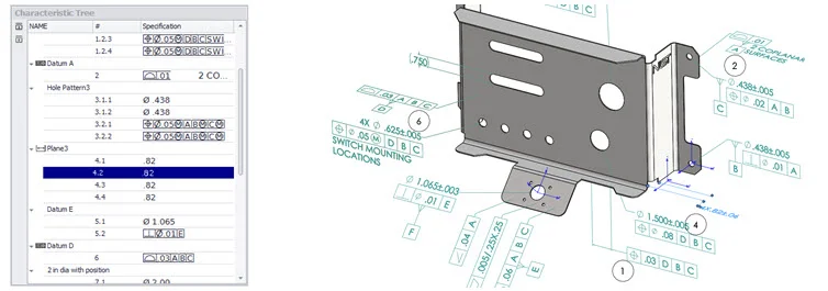 Once the files are imported in the project, the 3D Product and Manufacturing Information (PMIs) can be simply extracted using the new Smart Extract feature that directly reads the 2D or 3D CAD file information based on pre-defined settings similar to those found in the SOLIDWORKS Inspection Add-in.