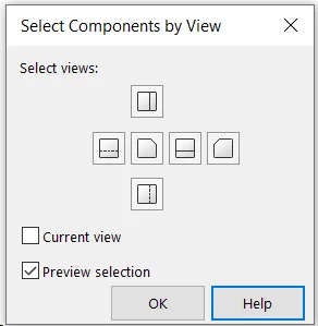 Visible components in a particular (Standard or current) view can be accessed directly by using Select by views make sure current view is enabled for non-standard views.