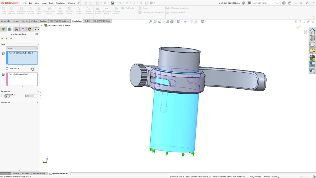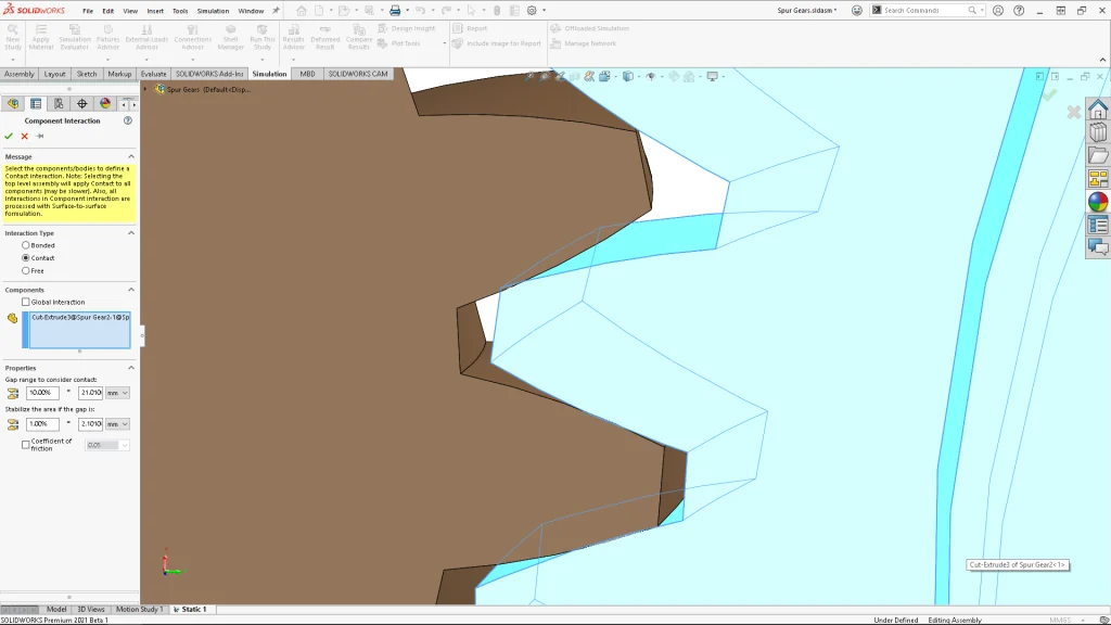 Many CAD models have less than perfect geometries, such as non-touching surfaces or clearance between bodies. These design elements make it more difficult for the solver to get started, which in turn prolongs solving time. SOLIDWORKS Simulation 2021 Contact Stabilization enhancement resolves this issue.