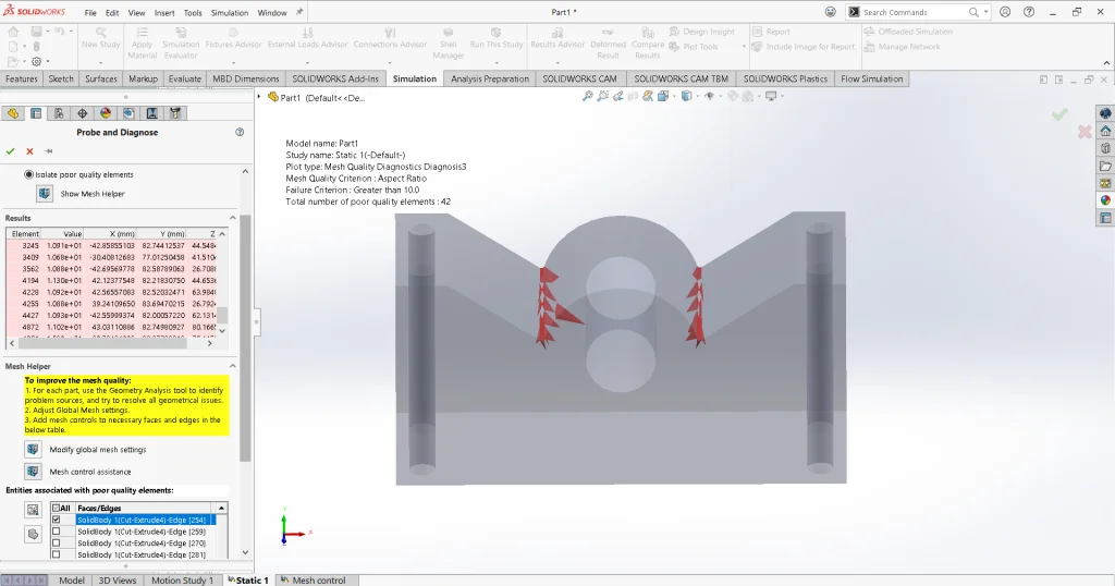 A high-quality mesh is key to a good simulation for result accuracy, convergence, and calculation speed. SOLIDWORKS Simulation 2021 introduces a brand-new set of diagnostic tools that enable you to examine the quality of a mesh by identifying and isolating poor quality elements and then prompting you to fix them.