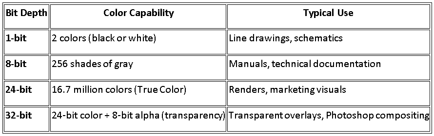 Each image type in SOLIDWORKS corresponds to a specific bit-depth configuration behind the scenes.