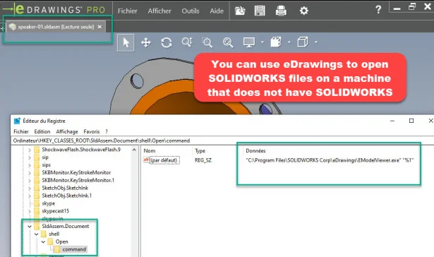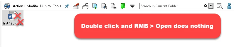 Windows has several ways to launch a file in an application. Some are handled by Windows and others added by the application itself. SOLIDWORKS® PDM relies mainly on standard Windows API methods to figure out what application to use when the Open command is called. If the registry keys associated to the filetype do not point to the correct application we can see the problem illustrated below where trying to open the file within a PDM vault view does nothing.