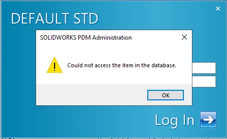 - How to Troubleshoot the error ‘Could not access the item in the database’ error, when login into the vault in SOLIDWORKS® PDM?