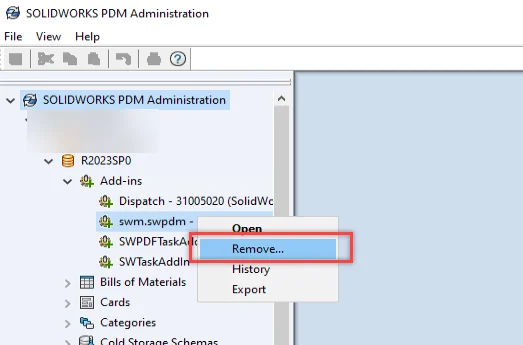 - Open the SOLIDWORKS® PDM Professional Administration tool.