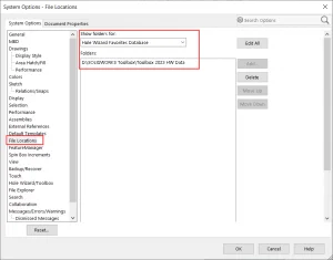 User can also define a different location through Tools Menu > Options > File Location > Hole Wizard Favorite Database. Refer below image for example :