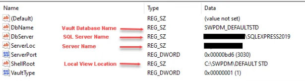 - ComputerHKEY_LOCAL_MACHINESOFTWAREWOW6432NodeSolidWorksApplicationsPDMWorks EnterpriseDatabases