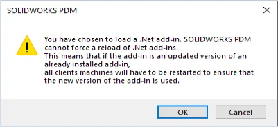 Kill and restart any active PDM Clients and the new version of the add-in is loaded within SOLIDWORKS® PDM;