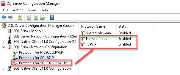fig 1.6 - In SQL Server Configuration Manager, Navigate to ‘SQL Server Network Configuration’ and check if the ‘TCP/IP’ and ‘Named Pipes’ is enabled for the SQL Server Instance (Refer Fig 1.7). It is often seen that for PDM Standard Vault (Since it uses SQL Express version), the ‘TCP/IP’ is disabled and thus the error is seen while login into the vault.