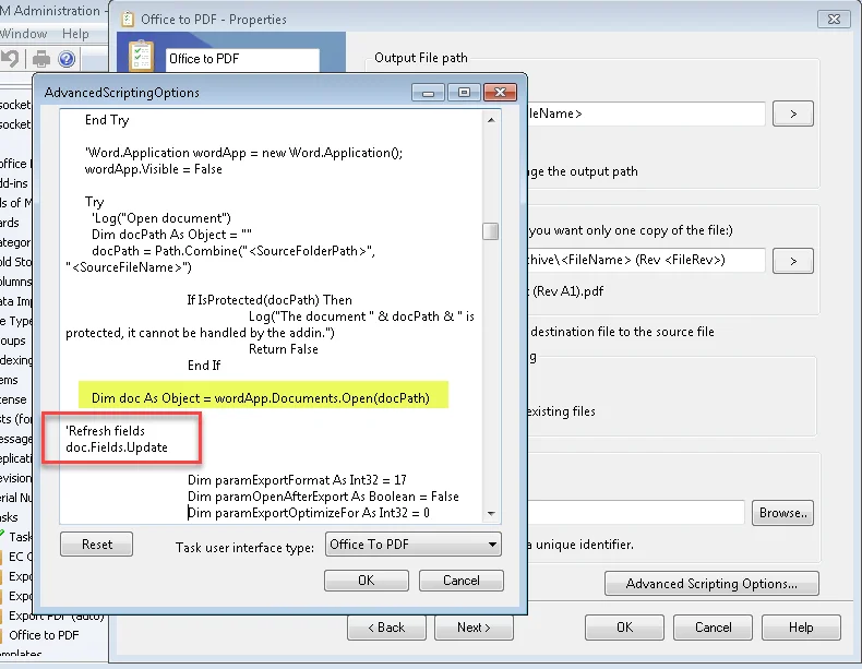 How to refresh fields in Word documents when using the Office to PDF task