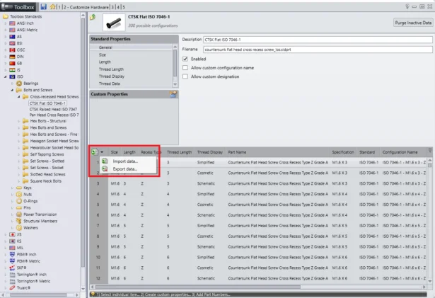 Most common mis-understanding related to this option is we can add new size and all the configurations in the excel table and import it directly in the Toolbox which is not true. The import and export of excel is for the text editable fields like Configuration Name, Designation, Part Numbers, Descriptions, and Comments.
