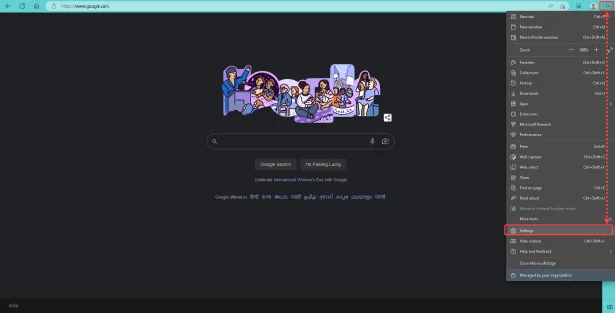 - Initiate Microsoft Edge. Hit the 3 dots (in right top corner) > Settings.