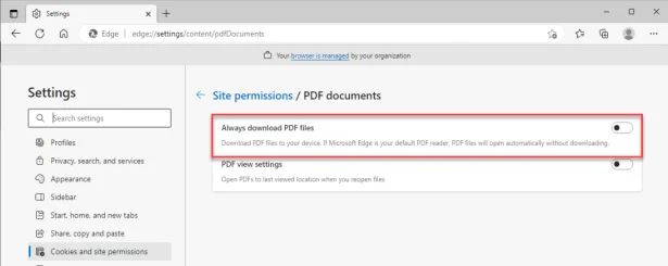- In Edge, go to: edge://settings/content/pdfDocuments