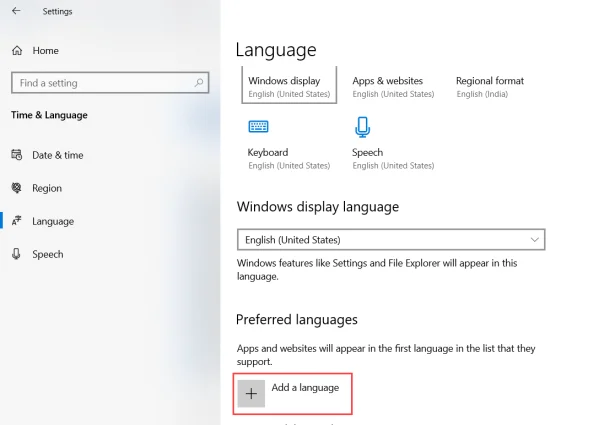 - Under Preferred languages, select ‘Add a language’.
