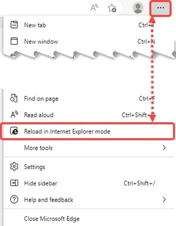- Hit the 3 dots (in right top corner) > ”Reload in Internet Explorer mode.”The browser may request install of ComposerPlayerActiveX.cab if the machine does not have SOLIDWORKS Composer or SOLIDWORKS® Composer Player installed already. Install the required ComposerPlayerActiveX.cab and “Allow blocked content” in the browser.