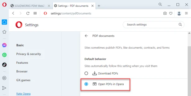 - Set Open PDFs in Opera