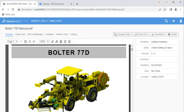 - Enabling Native PDF Web Browser Preview in SOLIDWORKS® PDM Web2 2023.