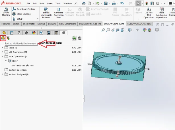 Once user complete the costing of individual component he can click the ‘Back to Multibody Environment’ to go back and view the costing information of Multibody Environment. See the image shown below for reference.