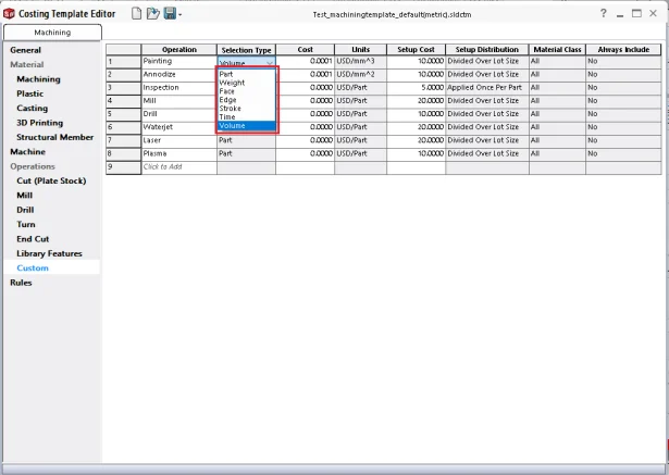 With the selection type Face & Edge you can select specific part of the component and with selection type Stroke & Time, you can enter a value, to compute in costing.