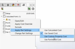 You can then add this cost by selecting ‘Use Custom Property Cost’ while calculating the cost in assembly. See the image shown below for reference.