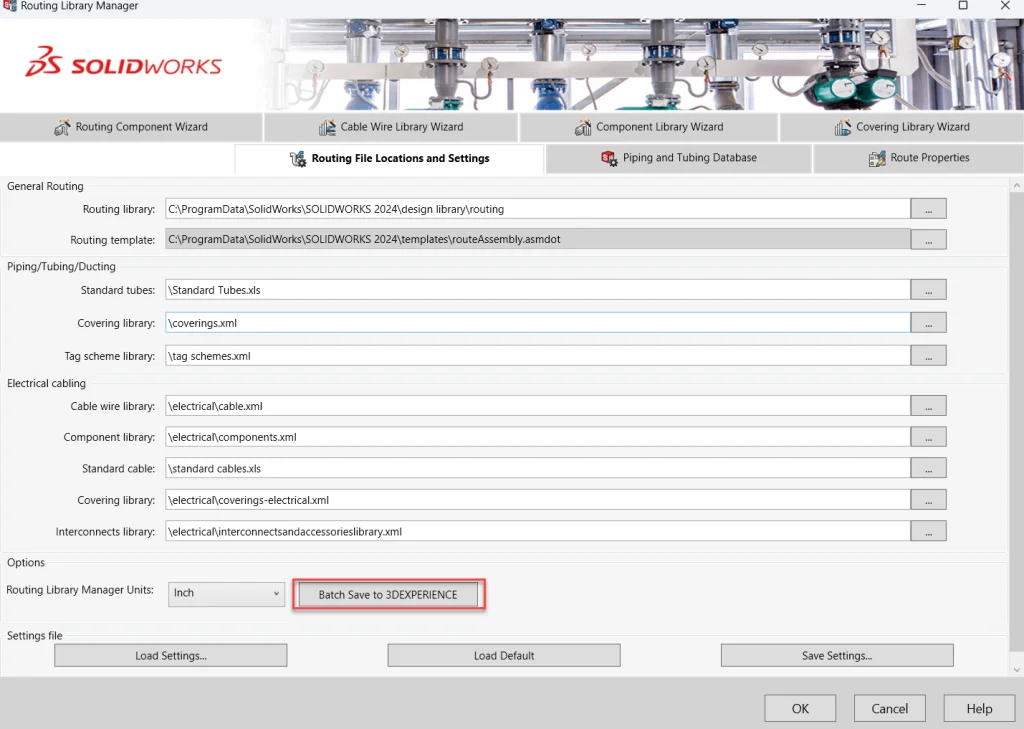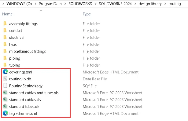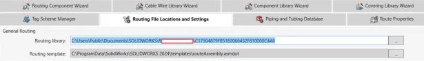 In general, when you work with SOLIDWORKS Routing, the routing library is accessed from the below default routing library location. <C:ProgramDataSolidWorksSOLIDWORKS <version>design libraryrouting>