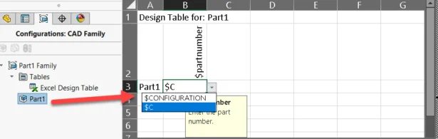 3. When updating a file for 3DEXPERIENCE compatibility, Design Table reverts custom value assigned to ‘$PartNumber’ to ‘$C’ when opened. Why?