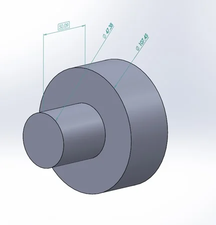 In this example we are going to calculate costing for a simple turning part which has only two steps (image shown below). In this the small diameter is 47.38mm and bigger diameter is 107.45 and the length from front face till back face is 50.09mm.