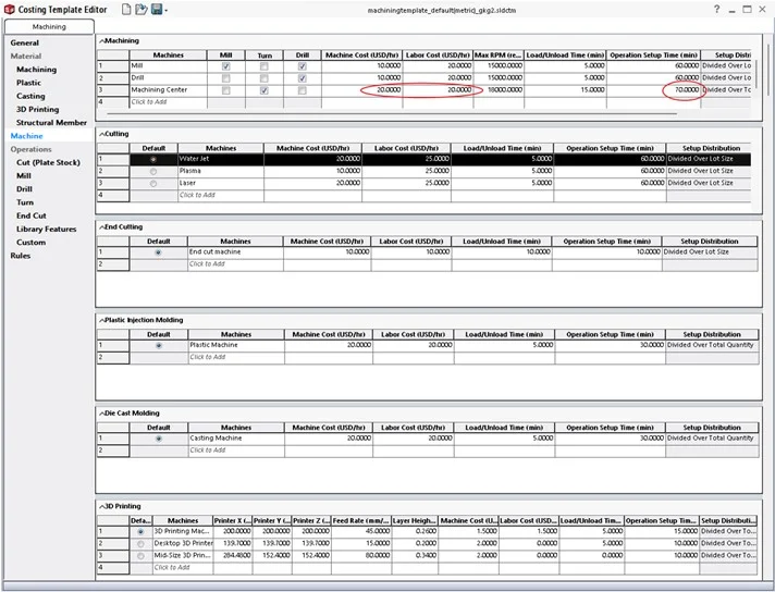 - From the above image ‘Machine Cost’ is 20 USD/hr and ‘Labor Cost’ is 20 USD/hr.