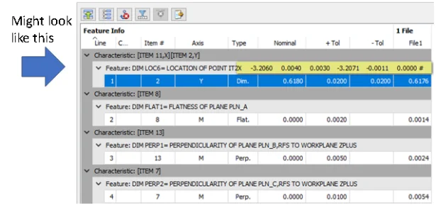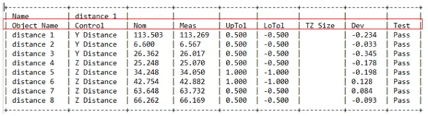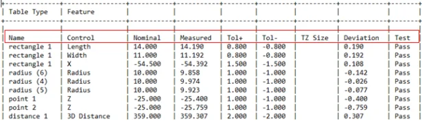 - Column Name Variability: In some CMM software, programmers have control over what the columns are called. The default settings for column names might differ significantly from what your SOLIDWORKS template expects. If the column names in the CMM data file do not match those in your import template, data may fail to import or import incorrectly. Example: