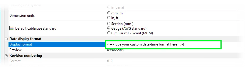 Some companies choose to display the date format as DAY-MONTH-YEAR, while other companies may prefer MONTH-DAY-YEAR. The previous two examples are standard formats that are built into SOLIDWORKS Electrical, but what about when our company standard requires a different format?