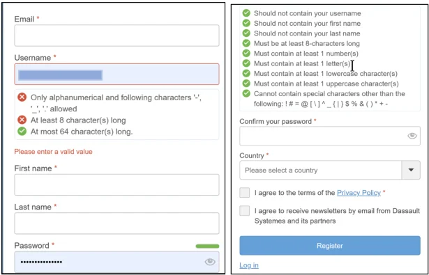 Create and register your 3DEXPERIENCE ID (credentials) to the platform.