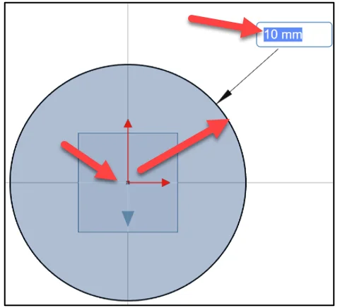 Sketch a 10mm circle centered about the Origin. This process is similar in SOLIDWORKS.