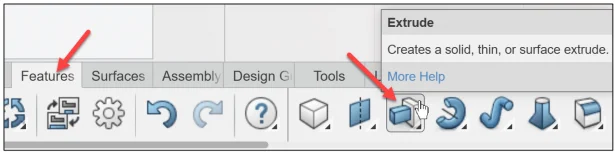 Click the Extrude feature from the Features tab in the Action bar.The feature icons are similar to SOLIDWORKS.