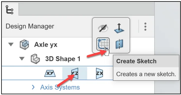 Click Create Sketch from the Context toolbar. There are multiple ways to create sketches and features.