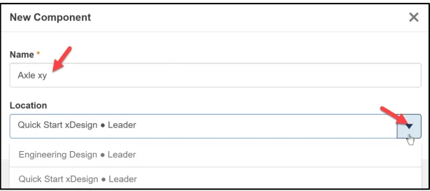 As an example, I created two Collaborative space locations as displayed in the New Component box: Engineering Design and Quick Start xDesign. I use the Quick Start xDesign Collaborative space for all lessons.