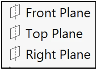 The default reference planes are: xy (Top), yz (Front), and zx (Right).